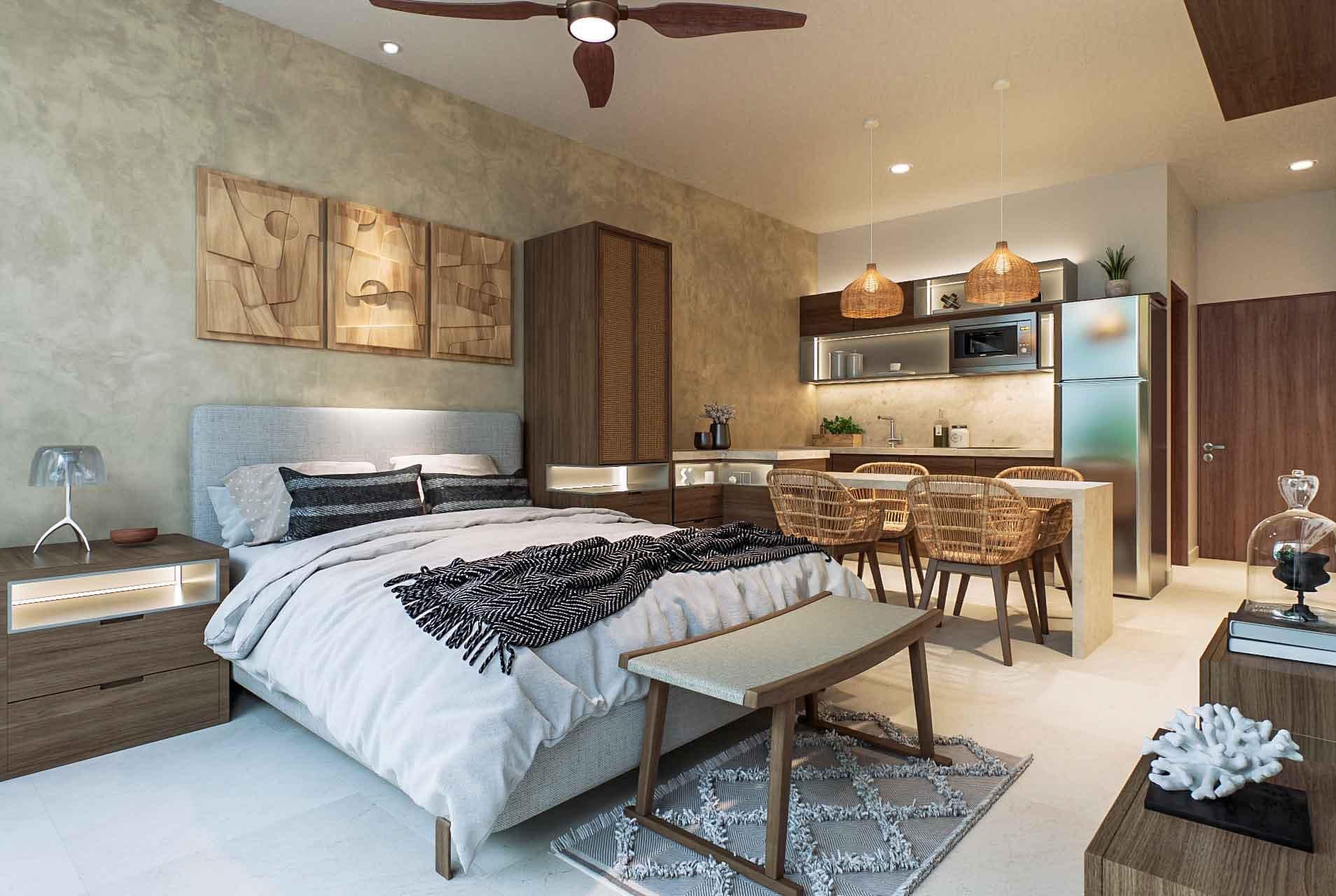 ● 3 tipologías distintas: Estudio, 1 recámara y 2 recámaras.